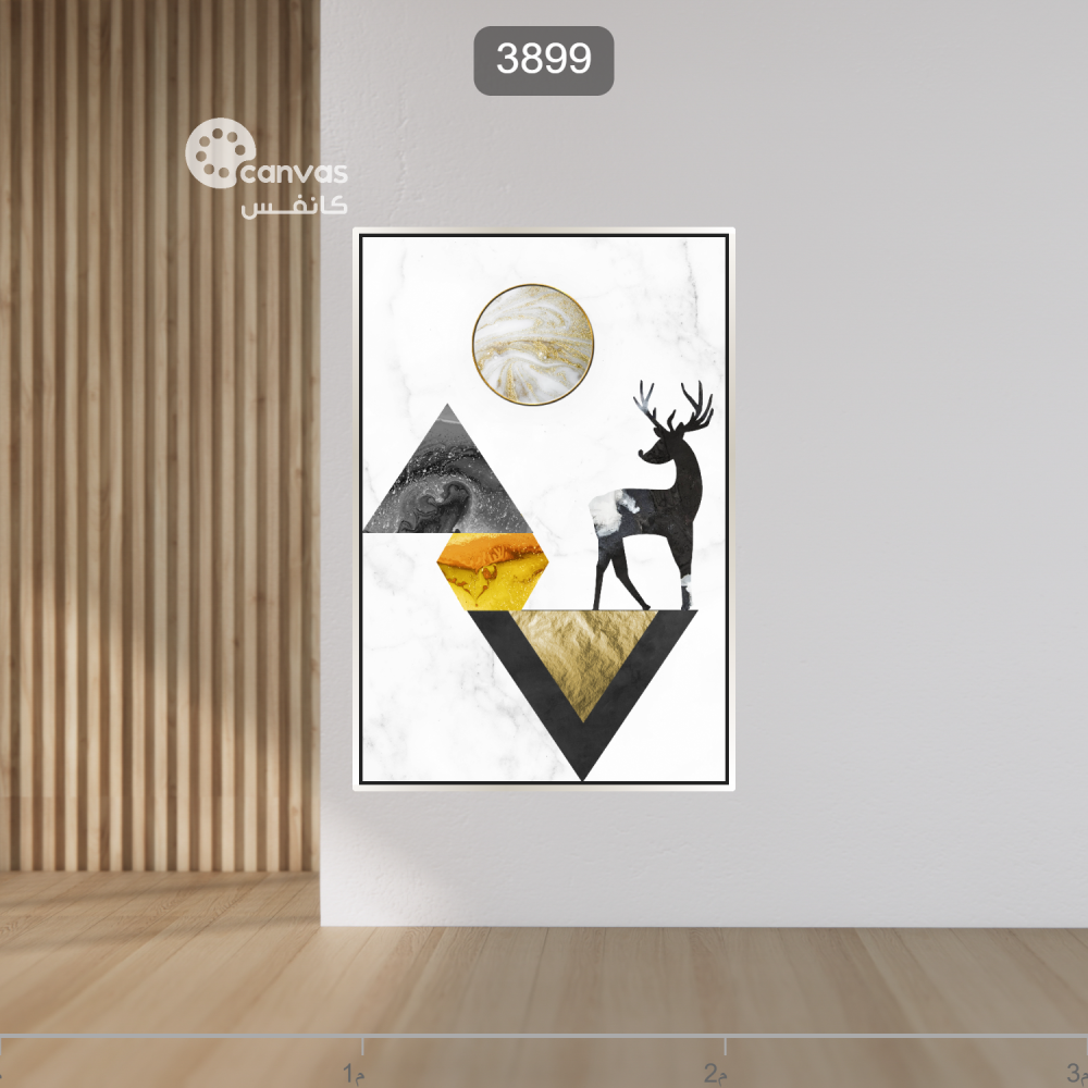نوع اللوحة: لوحة لغزال بتصميم هندسي مثلثي أسود وذهبي.