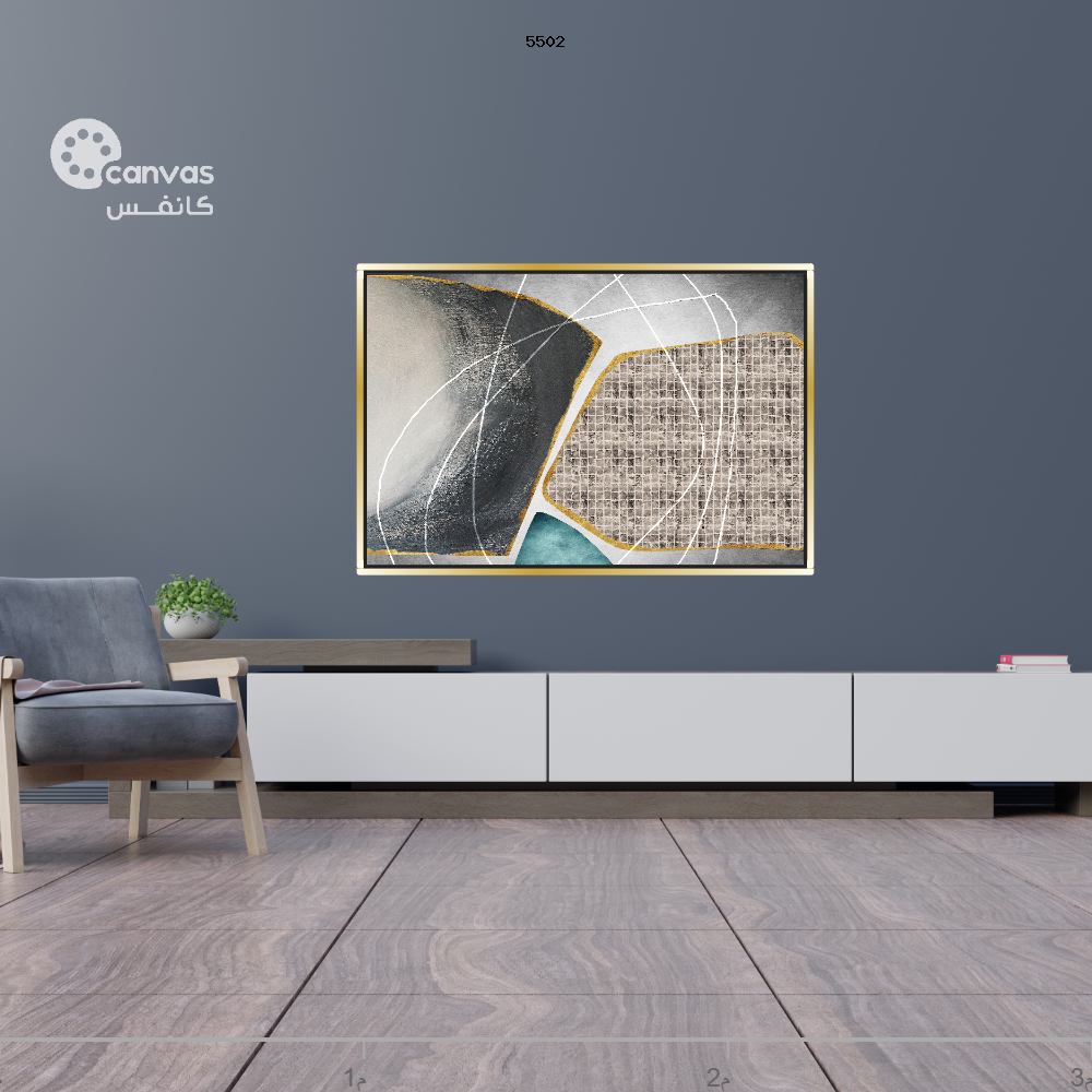 نوع اللوحة: لوحة فنية تجريدية معروضة على الحائط. العمل الفني عبارة عن لوحة قماشية مستطيلة الشكل مؤطرة بالذهب.